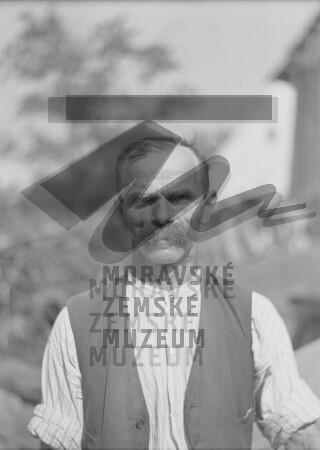 Muž v pracovním oděvu, nepopsáno.